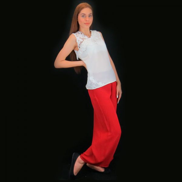 - Textiles: Seda para blusa de caÃda suave. Guipiur no elástico en diseño floral traÃdo exclusivamente de Colombia.