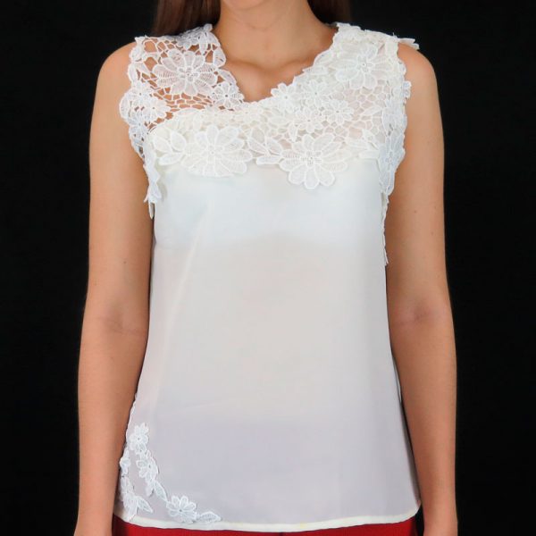 Elegante blusa One Shoulder para el dÃa o una ocasión especial, diseño acompañado con detalle de Guipiur en escote -traÃdo exclusivamente de Colombia- y confeccionada en seda para blusa.