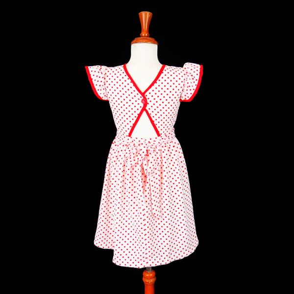 Hermoso y fresco vestido en Tatiana Printed de lunares rojos con detalle en sesgo contrastaste en color rojo. En el posterior detalle de espalda descubierta terminada con un bello lazo del mismo estampado.